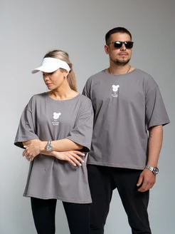 Футболка ОВЕРСАЙЗ серая однотонная хлопок
