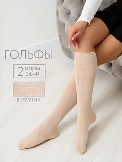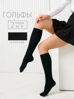 Гольфы высокие 2 пары в рубчик хлопок