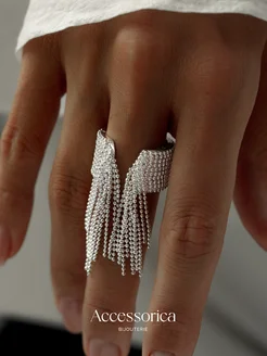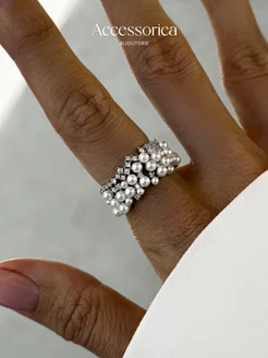 Кольцо безразмерное крупное с жемчугом бижутерия Accessorica