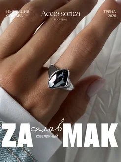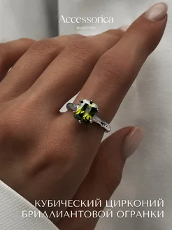 Кольцо с большим зеленым камнем бижутерия Accessorica