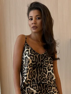 Рубашка оверсайз шелковая леопардовая блузка в офис