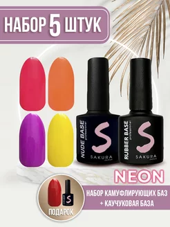 Камуфлирующая неоновая база для ногтей 5шт