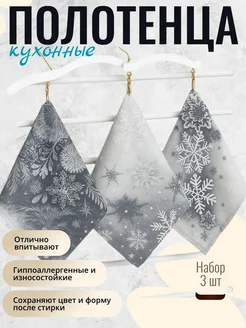 Новогодние полотенца Снежинки 2026 100% хлопок 45х60 3 шт