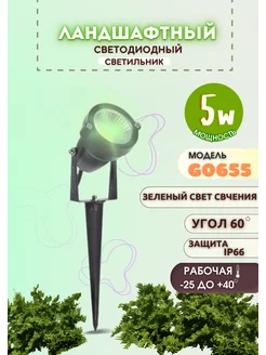 Светильник на колышке IP65 G0655 LED 5W зеленый 60гр