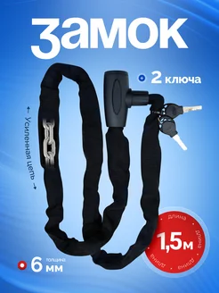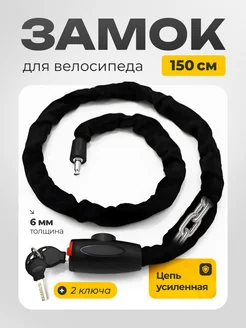Замок для велосипеда, мотоцикла цепной 6*1500 мм на ключе