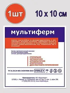 Повязка на рану заживляющая Мультиферм 10х10 см 1 шт