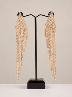 Серьги золотистые длинные со стразами вечерние бижутерия