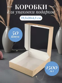 Крафт коробка с окном упаковочная 1500 мл 50 шт