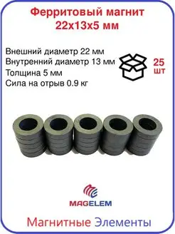 Ферритовый магнит 22х13х5 мм, кольцо - 25 штук