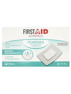 Повязка стерильная пластырный тип First 15х9см 10шт -1 уп