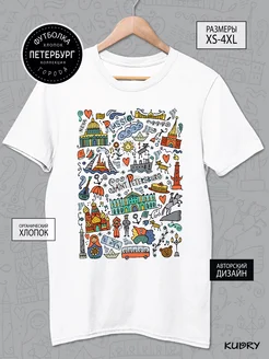 Футболка белая хлопковая с принтом Санкт-Петербург