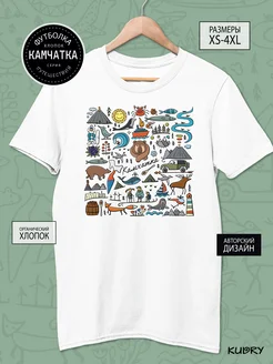 Футболка сувенир белая хлопковая с принтом Камчатка