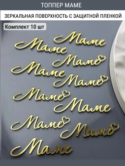 Топпер для торта Маме зеркальный акриловый золото