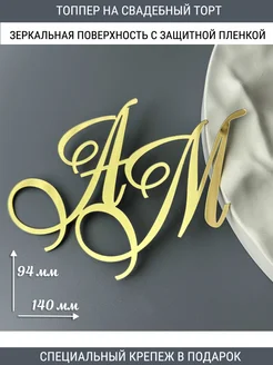 Топпер АМ инициалы на свадебный торт зеркальные