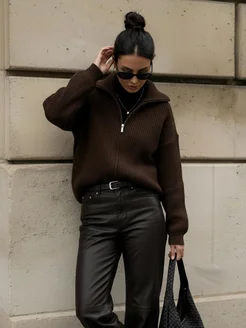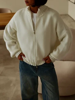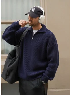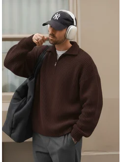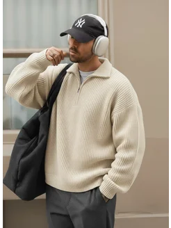 Свитер оверсайз вязаный с воротником полузамок на молнии