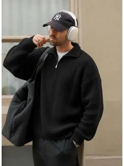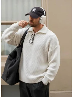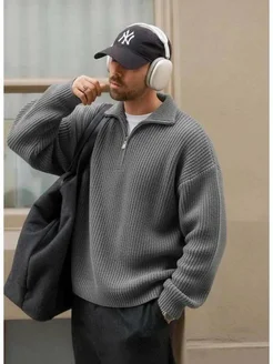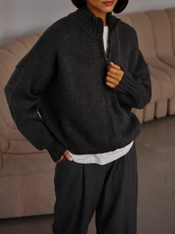 Свитер оверсайз вязаный укороченный теплый с принтом