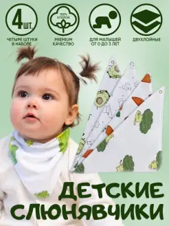 Набор слюнявчиков 100% хлопок на кнопках для кормления