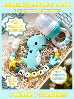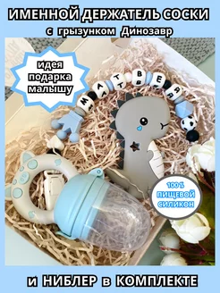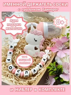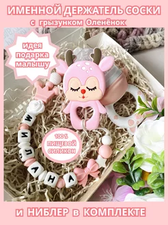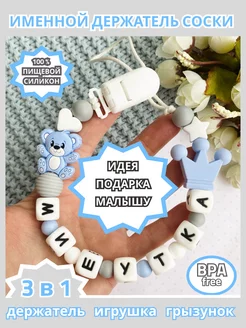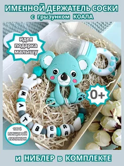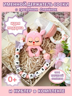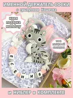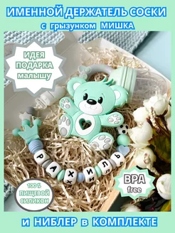 Именной держатель для соски Макар с грызунком и ниблером