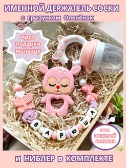 Именной держатель для соски Варюша с грызунком и ниблером