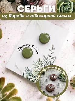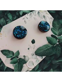 Блестящие серьги пусеты из дерева