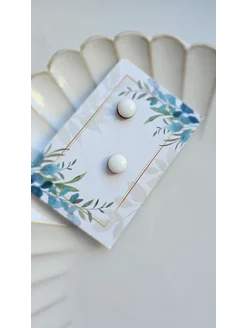 Серьги круглые гвоздики белые