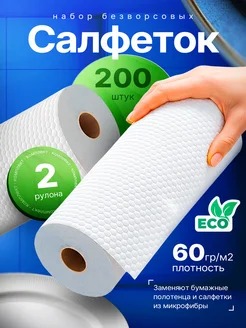 Салфетки безворсовые 2 рулона белые из целлюлозы для уборки
