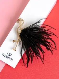 Брошь Фламинго с натуральными перьями