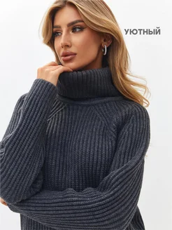 Свитер удлиненный туника оверсайз вязаный с высоким горлом