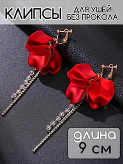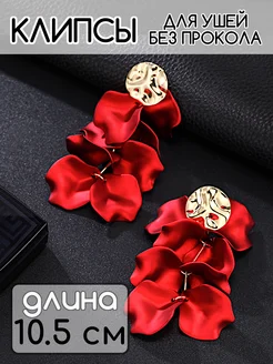 Длинные клипсы на уши без прокола красный цветок праздничные