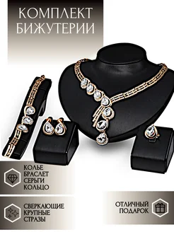 Гарнитур из 4 женскийх украшений со стразами, вечерний