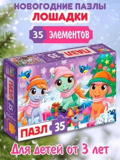 Новогодние пазлы для детей Лошадки, 35 элементов