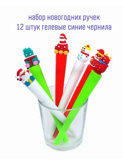 Ручка гелевая синие чернила с новогодней игрушкой