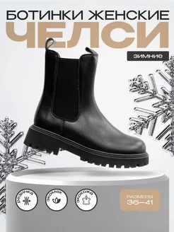 Ботинки зимние челси кожаные на платформе