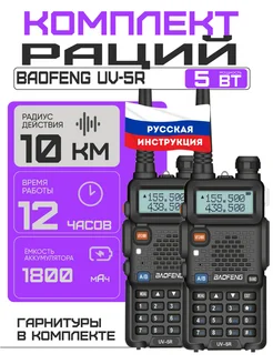Комплект раций Баофенг UV-5R 5W с гарнитурами