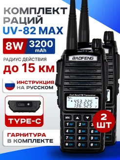 Комплект раций 2 шт UV-82 ULTRA,8 Вт,3400 мАч,Type-C
