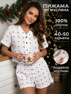 Муслиновая пижама с шортами и сердечками