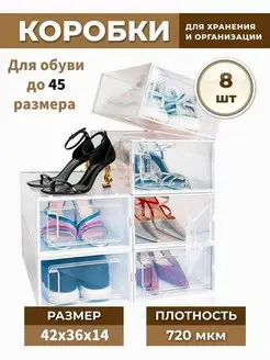 Коробки для хранения обуви и вещей прозрачные 8шт