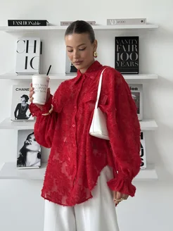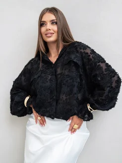 Блузка полупрозрачная оверсайз с кружевом