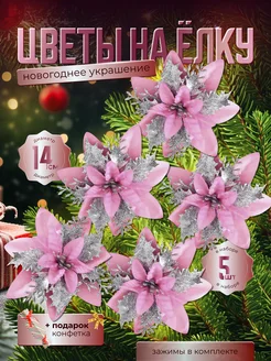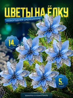 Новогодние елочные украшения цветы набор 5 штук