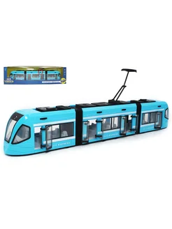 Детализированный пластмассовый трамвай (свет, звук) Синий