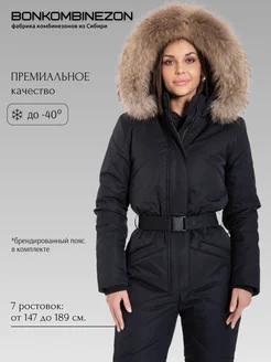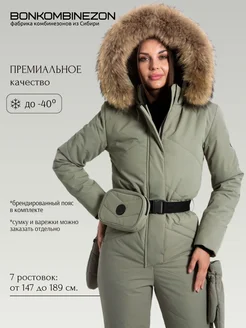 Комбинезон зимний с капюшоном и мехом горнолыжный