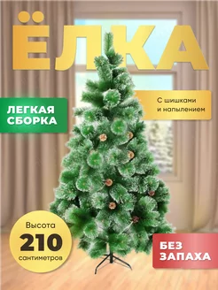 Елка искусственная новогодняя с шишками и напылением
