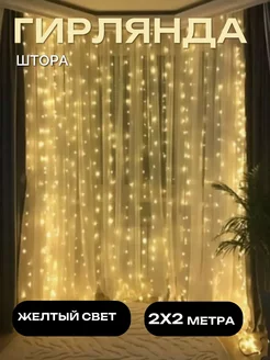 Гирлянда штора 2х2 желтая на окно