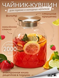 Кувшин для воды стеклянный с крышкой 2000 мл