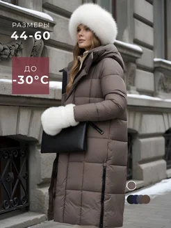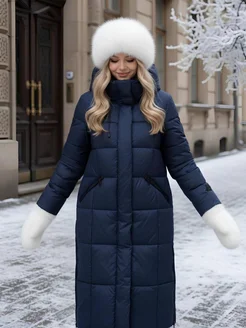 Пуховик зимний стеганый длинный с капюшоном