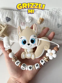 Именной держатель для соски прорезыватель Алиса Лисёнок