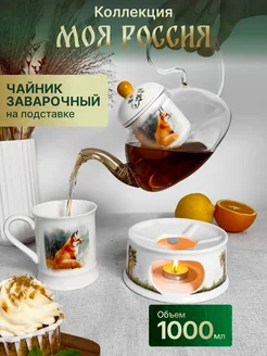 Чайник стеклянный заварочный 1000 мл на подставке