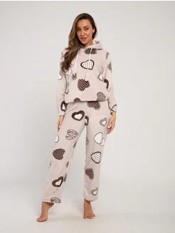 Пижама-костюм домашняя со штанами и капюшоном теплая