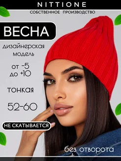 Шапка осенняя-весенняя вязаная бини с отворотом