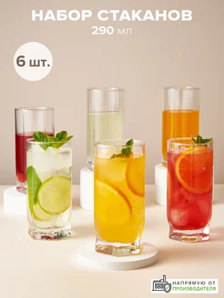 Стаканы стеклянные 290 мл набор 6 шт. высокие